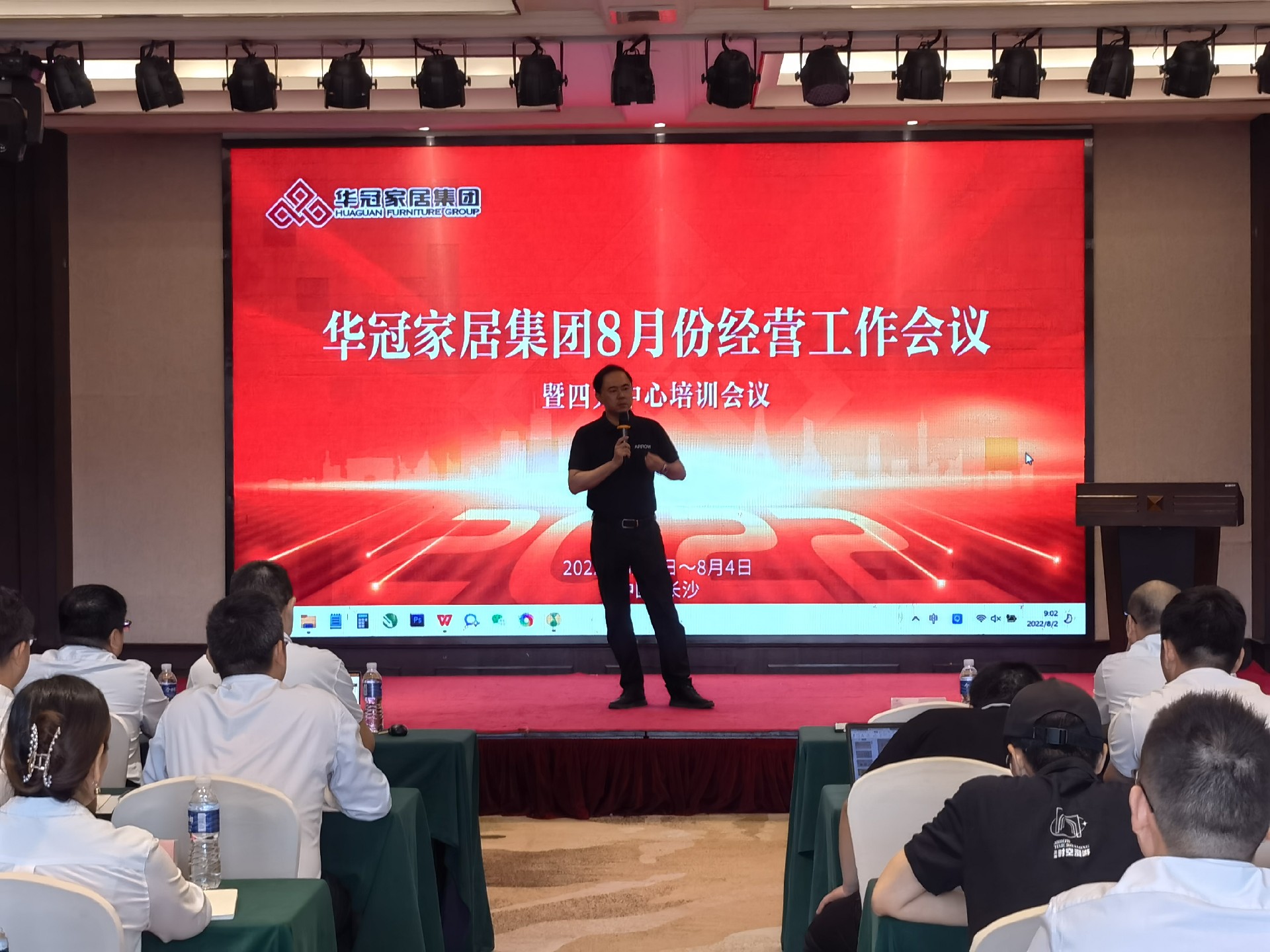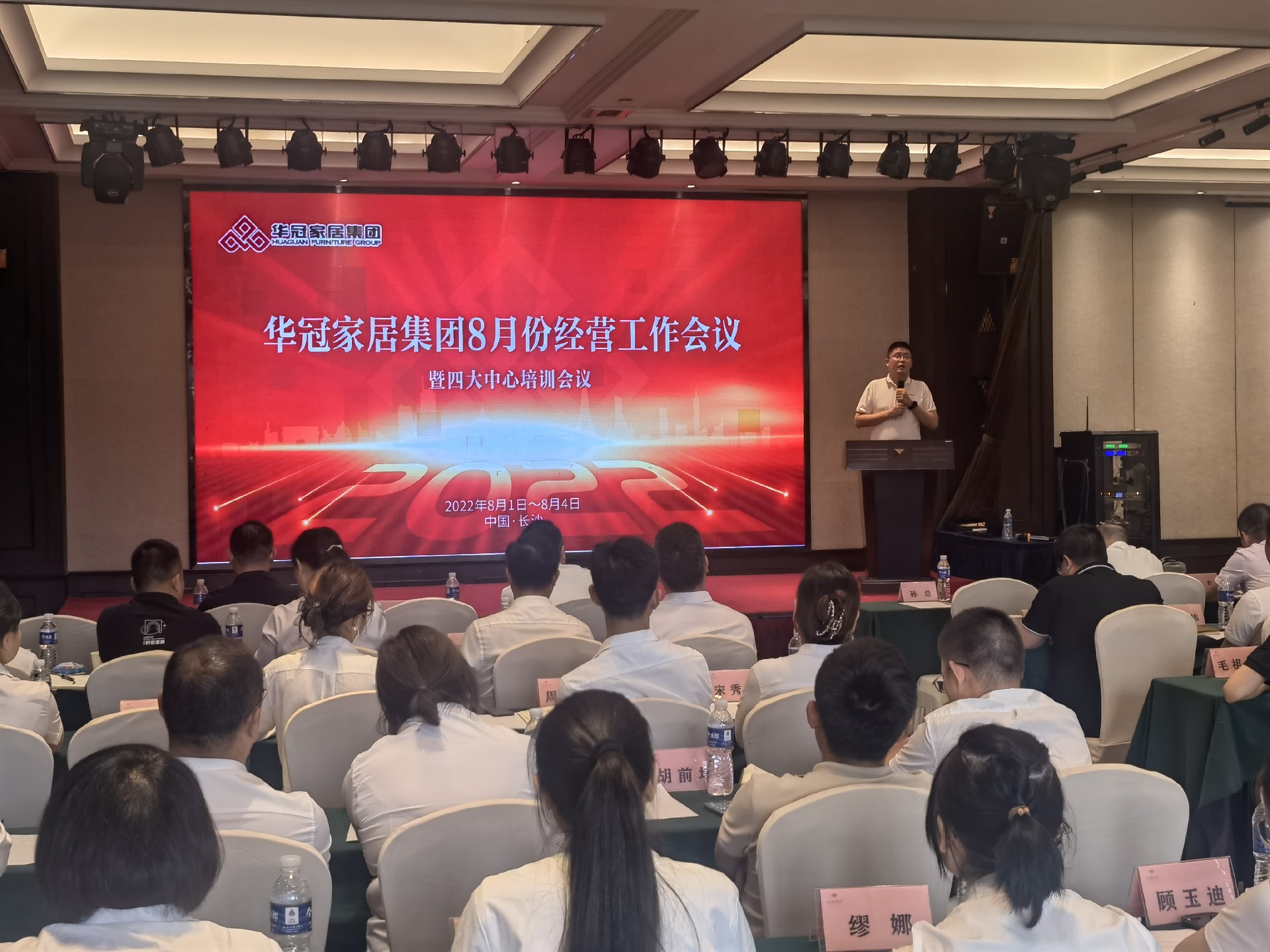 盛夏,骄阳似火,8月1日-8月4日。华冠家居集团在长沙远通酒店胜利召开2022年8月份经营会议暨四大中心培训会议。厂家老师认真分享,内容饱满,全员积极学习,认真记录,踊跃抢答,纷纷收获满满,同时总部及重庆、长株潭、南京、兰州、贵阳、南宁、西宁各分公司的管理干部积极分享,认真总结经验,分析工作不足,详细做下月具体工作计划,势必超额完成销售任务,为7月份画上圆满句号,正式开启了8月工作新局面。