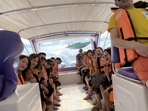 南京团队 11月4日,华冠建材连锁的优秀战友们正式开启他们的的泰国之旅。游湄南河、大皇宫、玉佛寺,细细感受着泰国当地宗教信仰;到了泰国必不可少的是“马杀鸡”:泰式按摩,经过一天的游玩,享受一场泰式按摩,完全驱散了游玩的疲惫,也能好好感受一番当地的风土人情;经过一番释放后,战友们又来到了拉差达火车夜市,体验一番当地的生活习惯。
